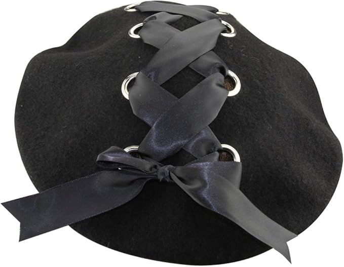 Womens French Artist Solid 100% Wool Beret Hats with Rivets Ribbon