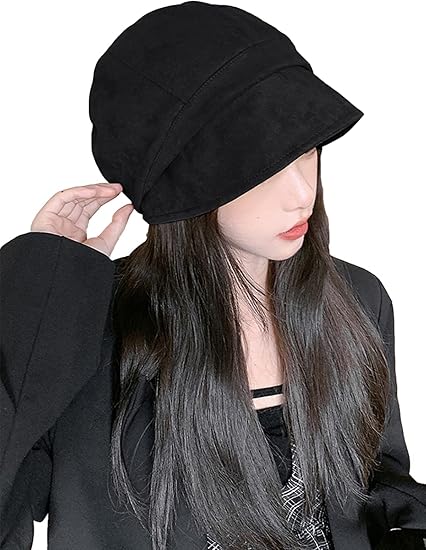 Black Newsboy Beret Hats for Girl Women, Fashion Retro Winter Autumn Hats Ladies Beret Octagonal Cap
