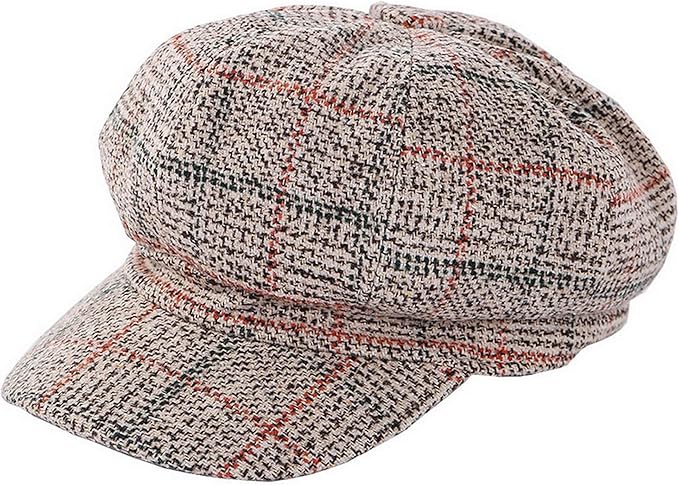 Women Newsboy Baker Boy Cap Warm Thick Plaid Peaked Beret Cabbie Sun Artist Hat
