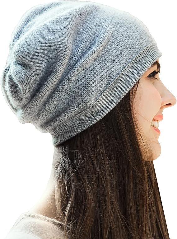 100% Cashmere Beanie for Women in a Gift Box, Oversized Women Beanie Hat