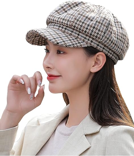 Women's Newsboy Cap Retro Plaid Octagonal Hat Outdoor Sun Hats Casual Cap Painter Hat for Women Paperboy Beret Caps